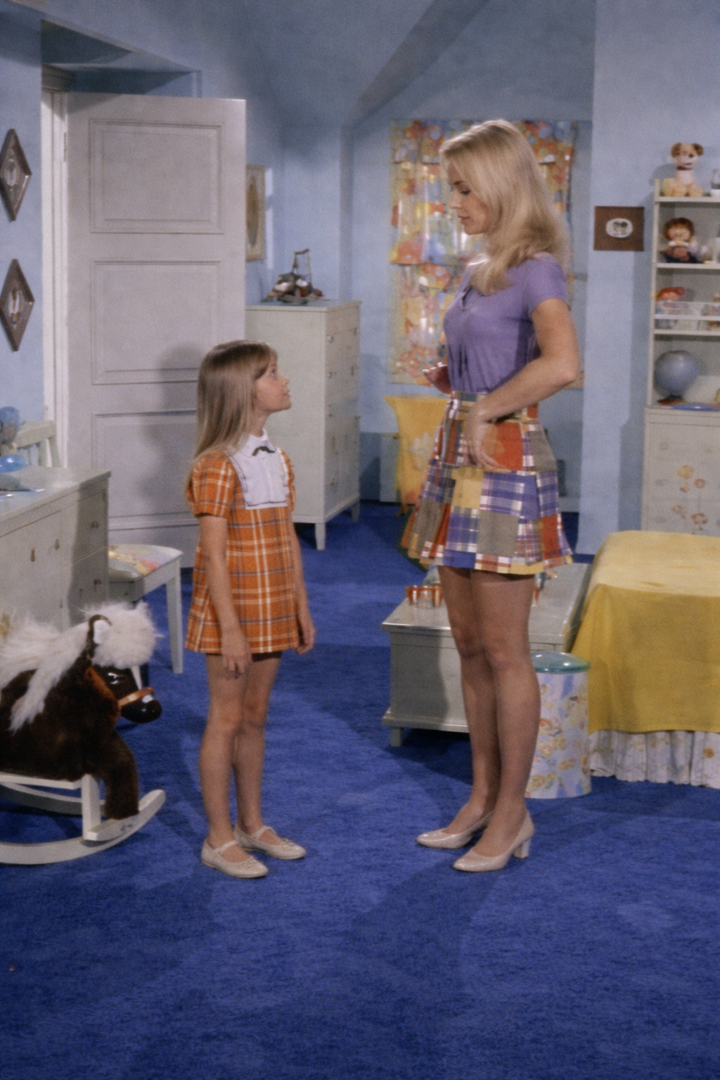 At first glance, this scene from the 1960s looks completely normal—a woman and a young girl standing together in a colorful bedroom, having what seems like an ordinary moment. Everything about it feels typical for television of that time, from the bright set design to the wardrobe and lighting.