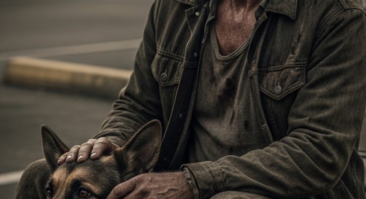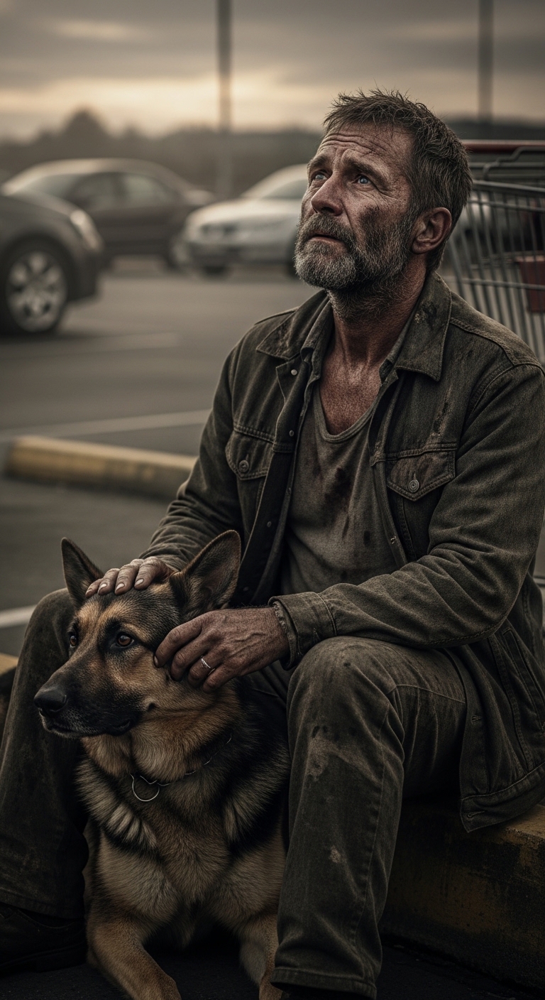 Next to him curled a large German Shepherd, pressed against his side like a living shield. The dog was groomed and looked well-fed and loved.